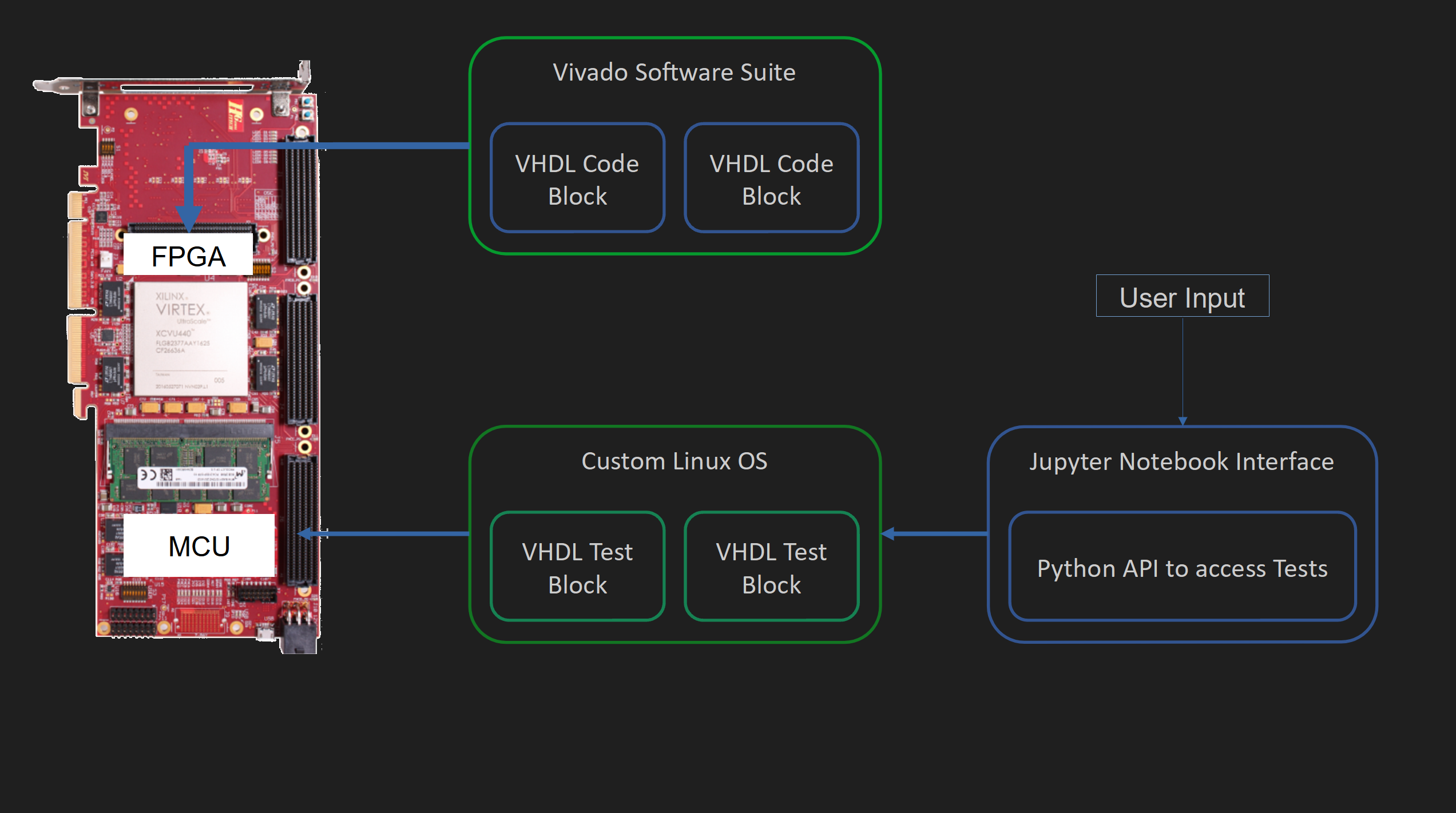 The task at hand was to use a custom distro of Linux on an MCU to run the VHDL Tests. The proposed interface between the user and the VHDL tests was Jupyter Notebooks.
